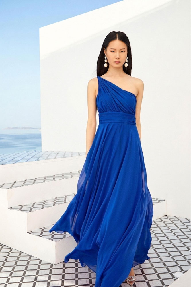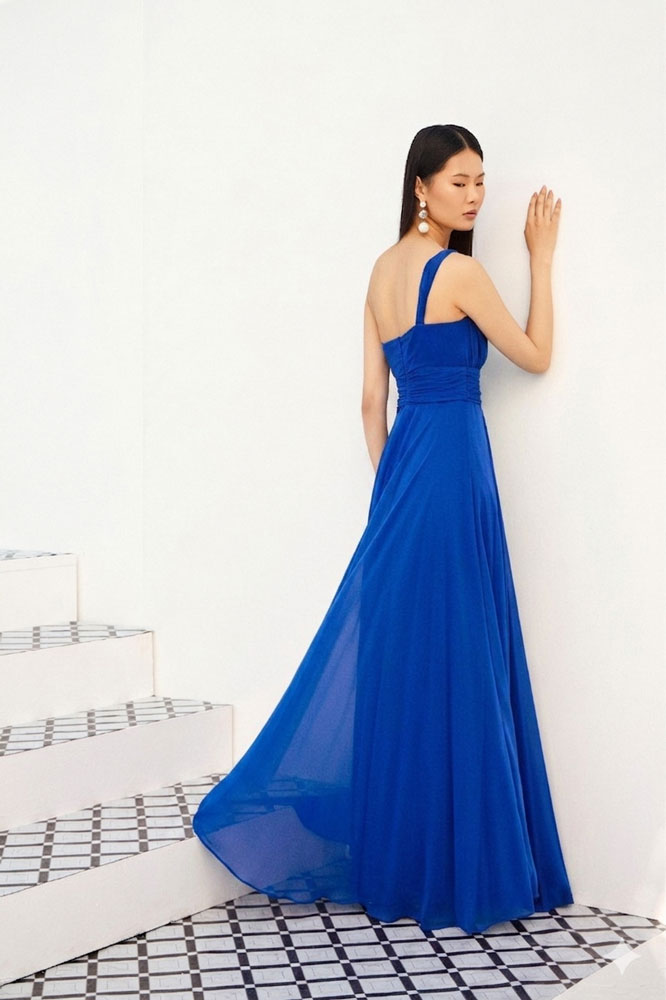 Αέρινο Μάξι Φόρεμα με Έναν Ώμο σε Royal Blue – Andrianopoulos