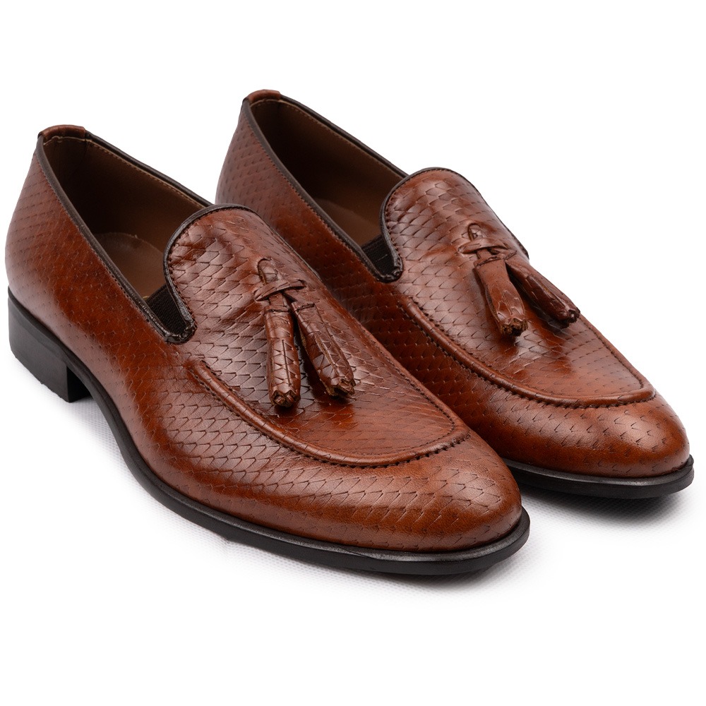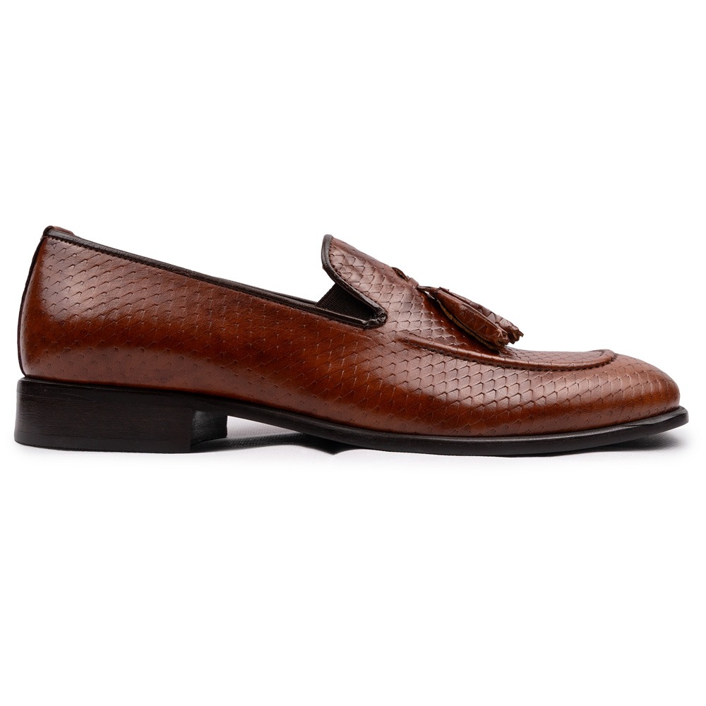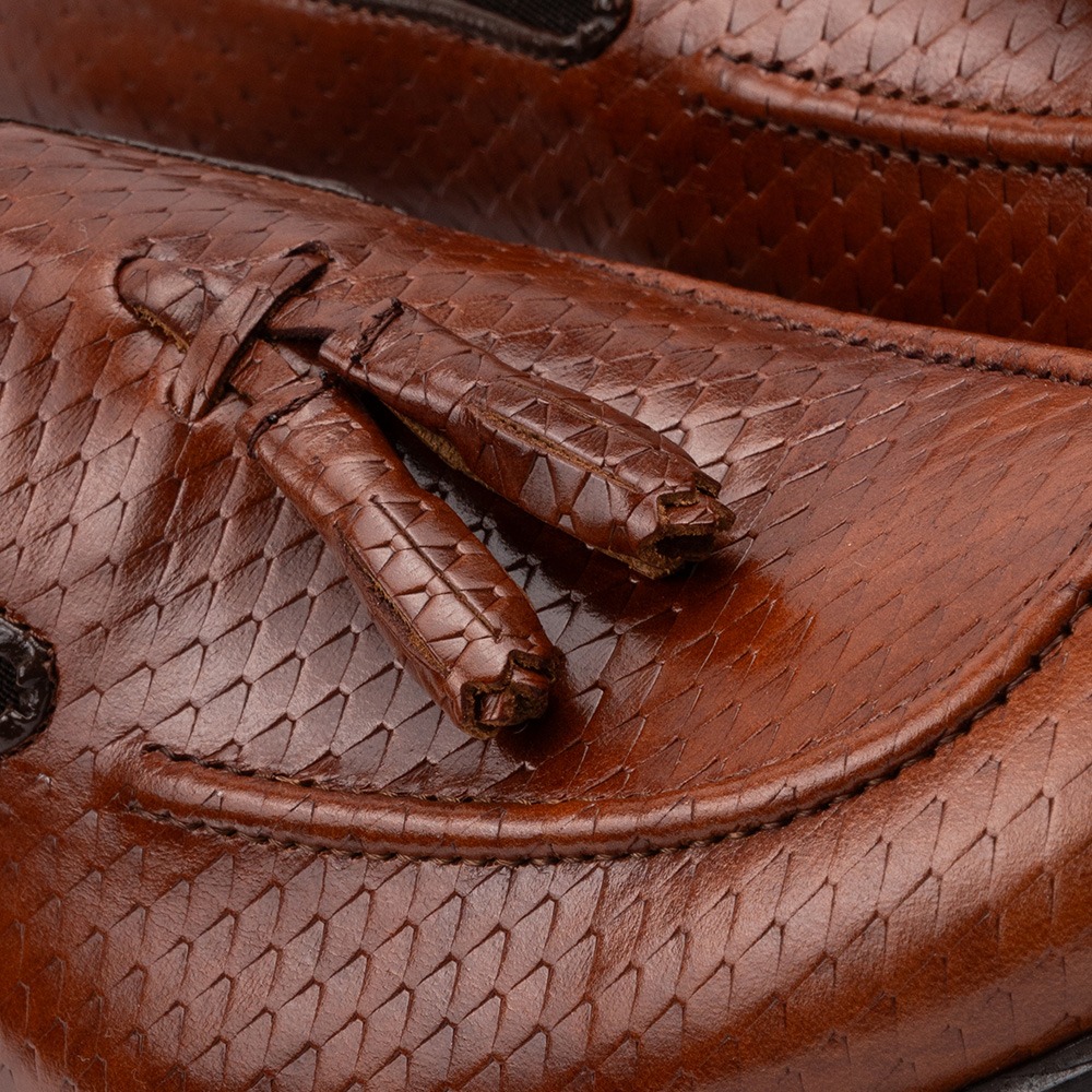 Ανδρικά Δερμάτινα Loafers με Φούντες – Καφέ Πύθωνα Εφέ | Andrianopoulos 1930