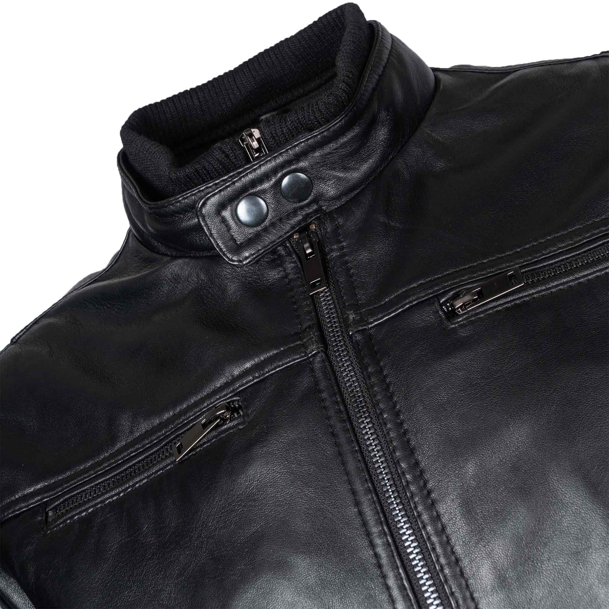 Ανδρικό Δερμάτινο Μπουφάν Μαύρο με Ψηλό Γιακά και Τσέπες | Andrianopoulos 1930
