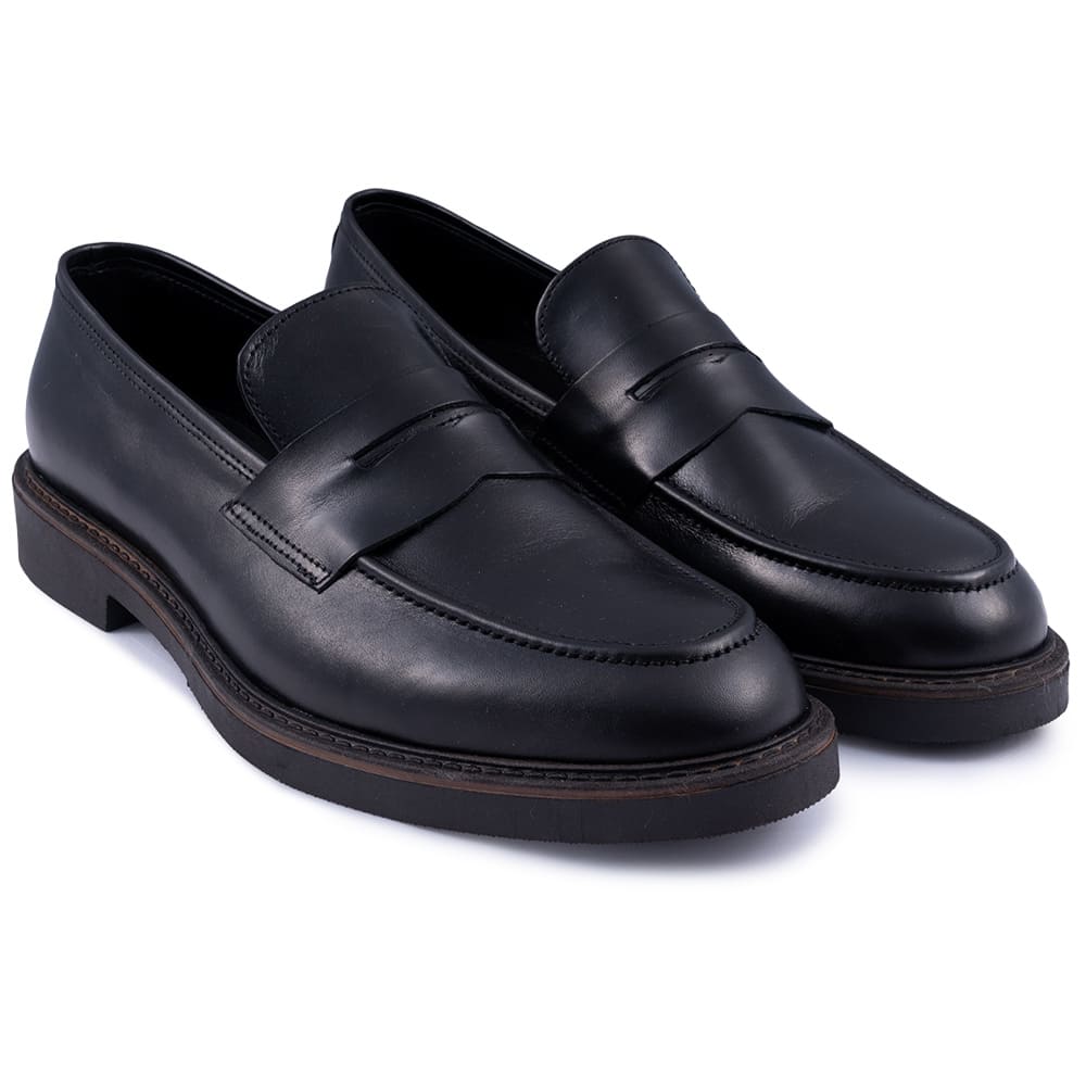 Κλασικά Ανδρικά Δερμάτινα Loafers σε Μαύρο Χρώμα