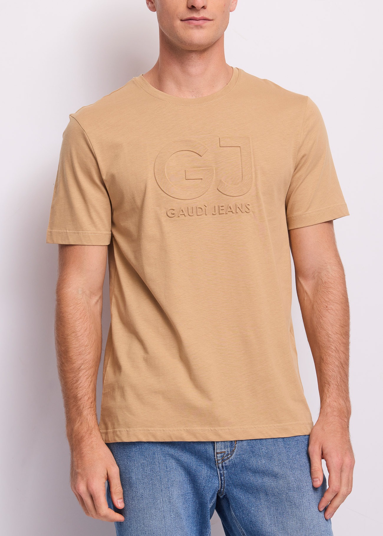 Σε μια ζεστή, γήινη καμηλό απόχρωση (camel/sand), το μπλουζάκι ξεχωρίζει χάρη στον μίνιμαλ αλλά δυναμικό σχεδιασμό στο στήθος: τα αρχικά “GJ” και η επιγραφή “GAUDÌ JEANS” αποτυπώνονται με μια εντυπωσιακή ανάγλυφη (embossed) τεχνική. Αυτό το 3D εφέ στην ίδια ακριβώς απόχρωση με το ύφασμα (tonal), προσδίδει χαρακτήρα στο ρούχο χωρίς να δημιουργεί έντονες χρωματικές αντιθέσεις. Διαθέτει κλασική στρογγυλή λαιμόκοψη, κοντά μανίκια και κανονική εφαρμογή που προσφέρει ελευθερία κινήσεων όλη την ημέρα. Στο πίσω μέρος διατηρεί μια καθαρή, μονόχρωμη αισθητική.