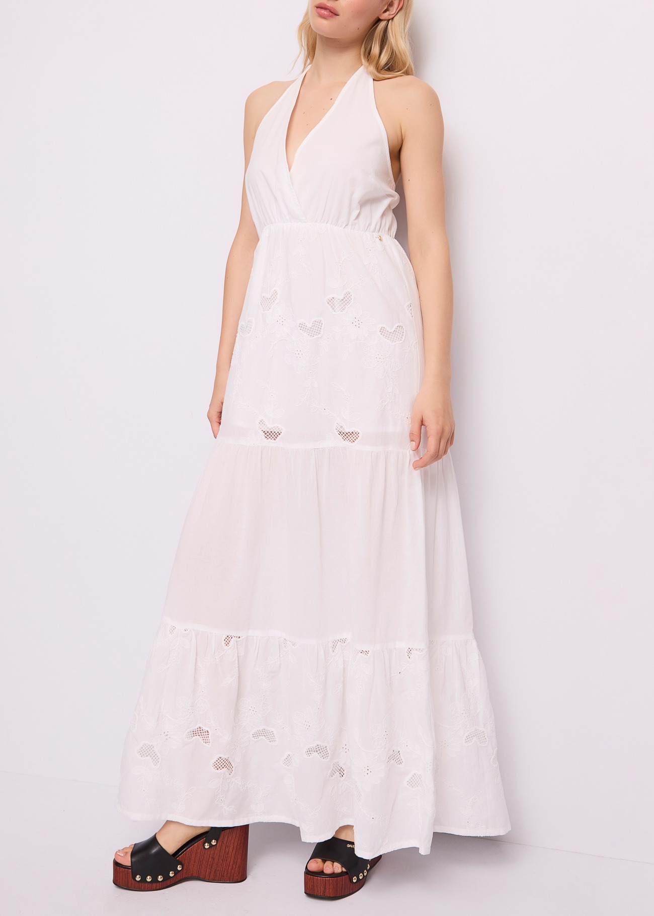 Λευκό Maxi Φόρεμα με Κέντημα Broderie Anglaise – Gaudi